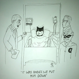 | I'm known for my workplace doodles. Past coworkers still mention the little cartoons I used to draw on boxes in stockrooms. This one I sent to my wife in March. |
